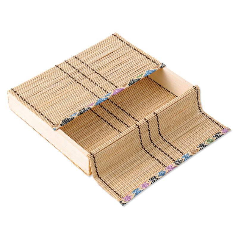 商品説明 | 天然素材の竹を使用したすだれ容器。シンプルながらも上品な和の趣が食材を華やかに引き立てます。お弁当以外にもお菓子などをいれてギフト用にしたりと様々な用途にご使用いただけます。※天然素材を使用しているため、色味等に若干の違いが生じる場合がございます。予めご了承ください。 |