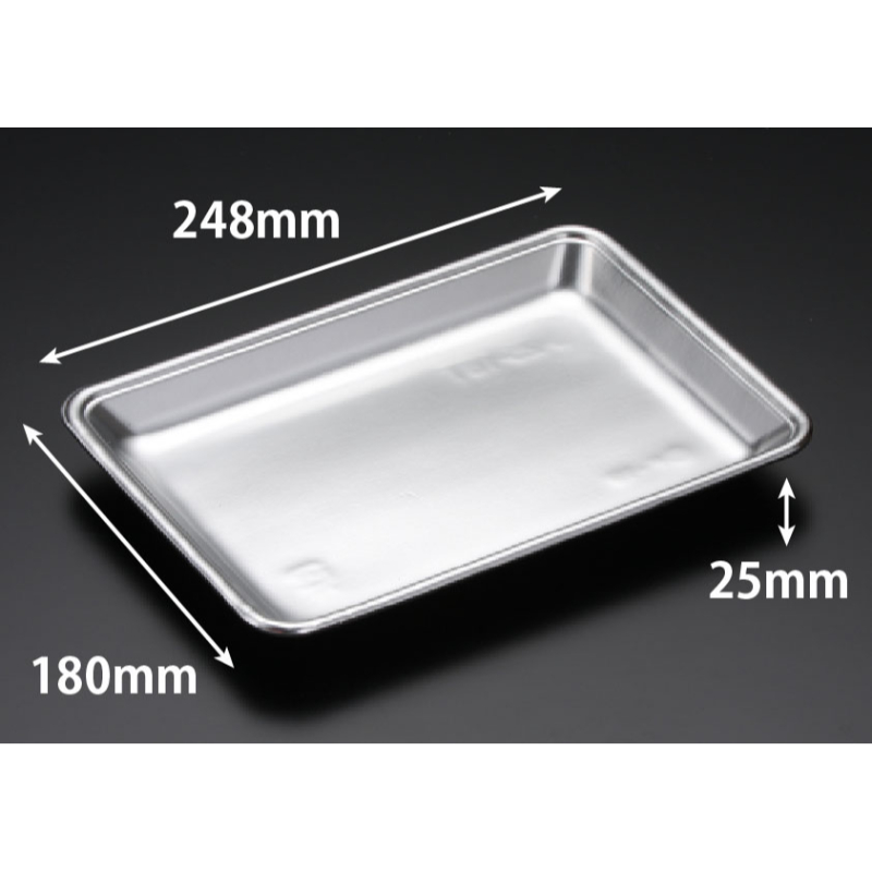 | 商品説明 | 焼肉や味付け肉用ロースタックトレー。BBQ商品にピッタリシルバー柄!個食用トレーにもオススメです。 |