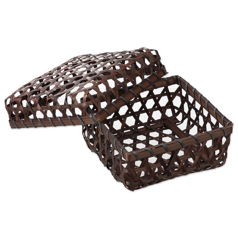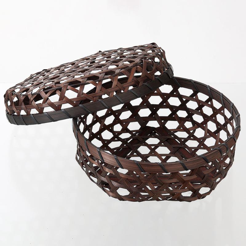 フタ付カゴ 茶染メザルフタ付丸(小) 萬洋