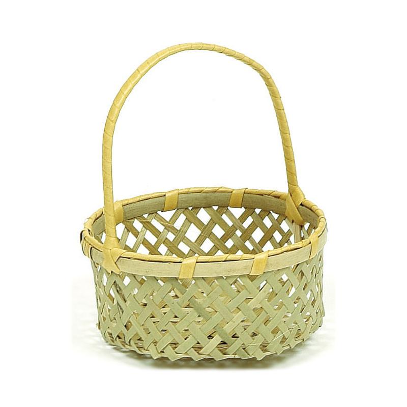 商品説明 | 持ち手付きの小型の竹かご。キャンディやちょっとしたお菓子などを入れてギフト用にしたり、店舗のディスプレイ用としても最適。竹は通気性が良く丈夫な素材のため、実用性と装飾性を兼ね備えた逸品です。※天然素材を使用しているため、サイズや色味に若干の違いが生じる場合がございます。予めご了承ください。 |
