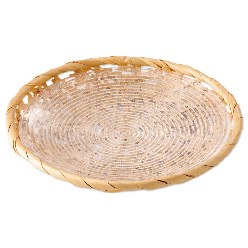 | 商品説明 | 竹篭にアクリル製のプレートをセットしました。天然素材の竹の風合いとアクリル樹脂の使い勝手の良さが魅力です。 |