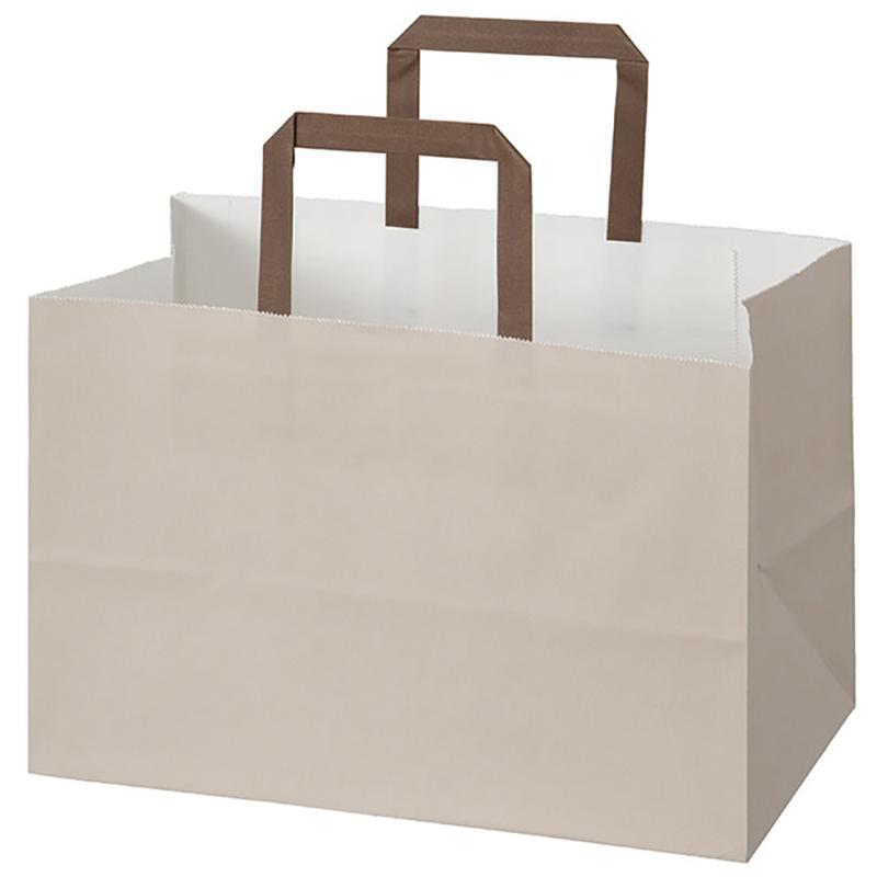 | 商品説明 | 晒(さらし)クラフト製の無地ハンドル付紙袋です。落ち着いた象牙カラーにハンドルのブラウンがアクセントに。おしゃれにお使いいただける手提げ紙袋です。 |