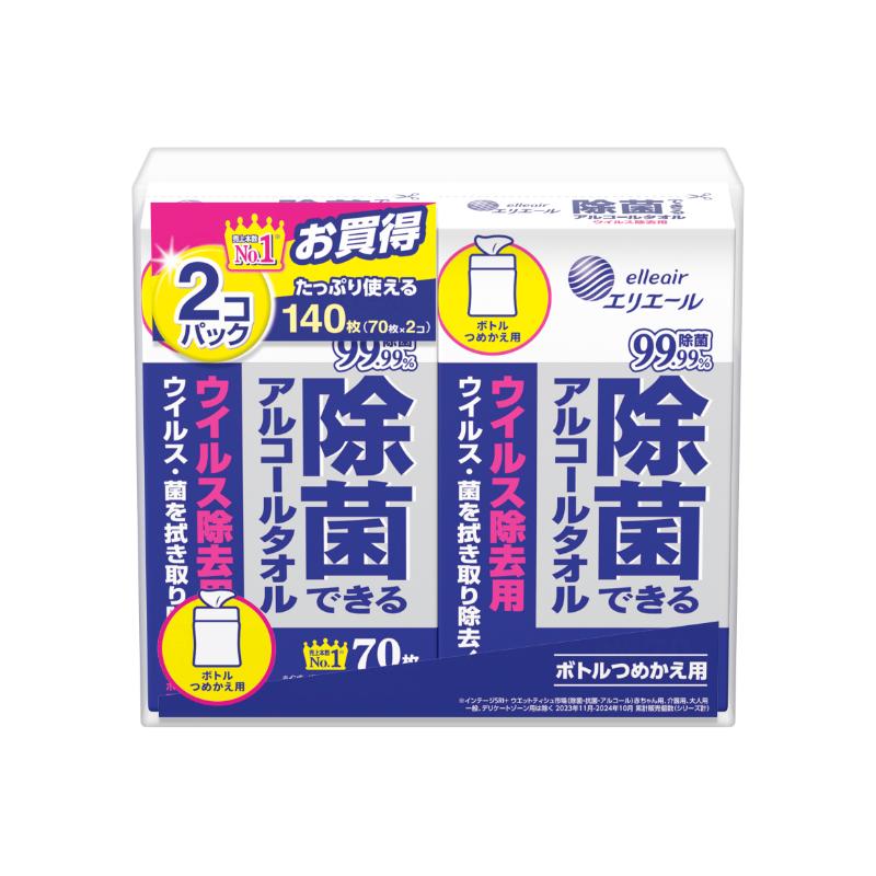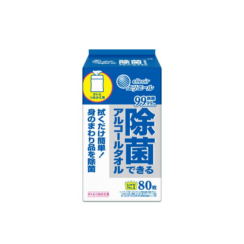 衛生資材 エリエール 除菌できるアルコールタオルボトル つめかえ用 80枚×2P エリエール