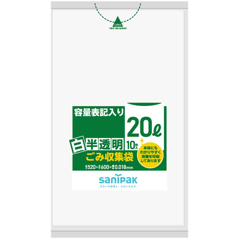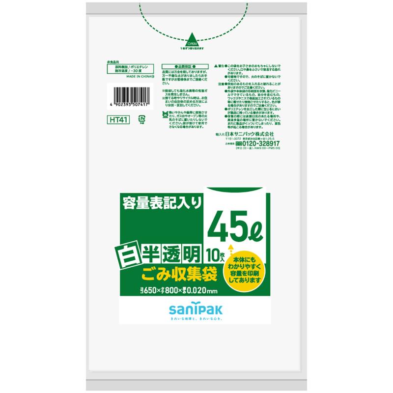 • HDゴミ袋 容量表記入り 白半透明ごみ収集袋 90L 10枚 0.023mm 日本サニパック