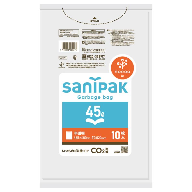 HDゴミ袋 サニパックポリ袋 nocoo in(ノクーイン) 45L 10枚 0.020mm 日本サニパック