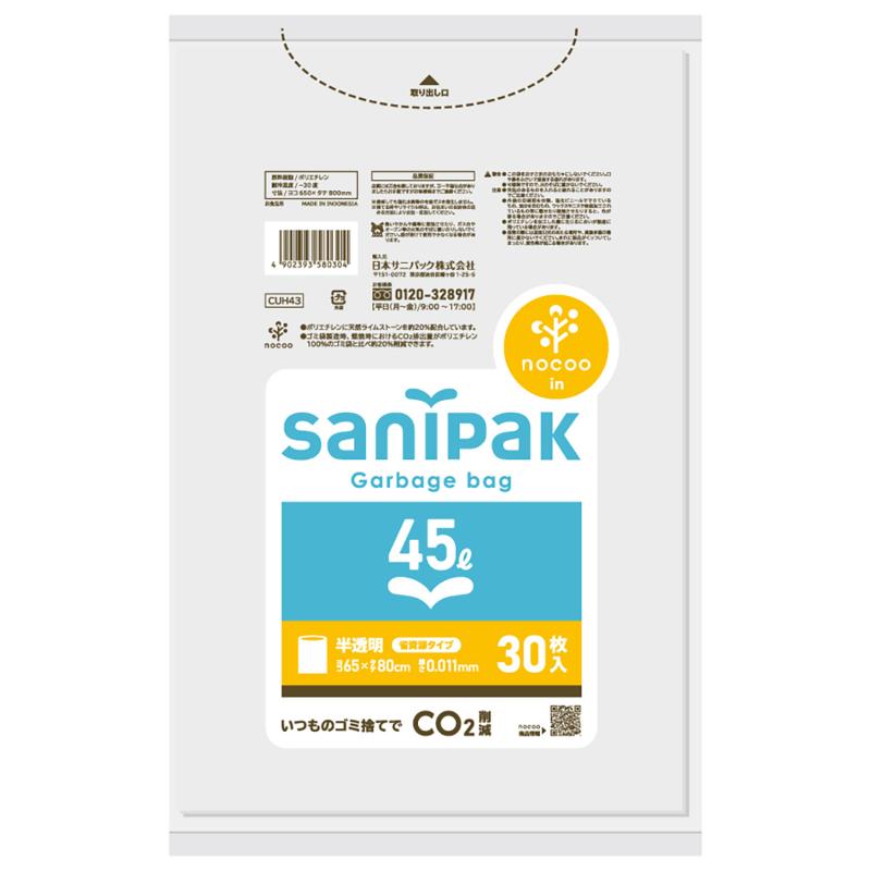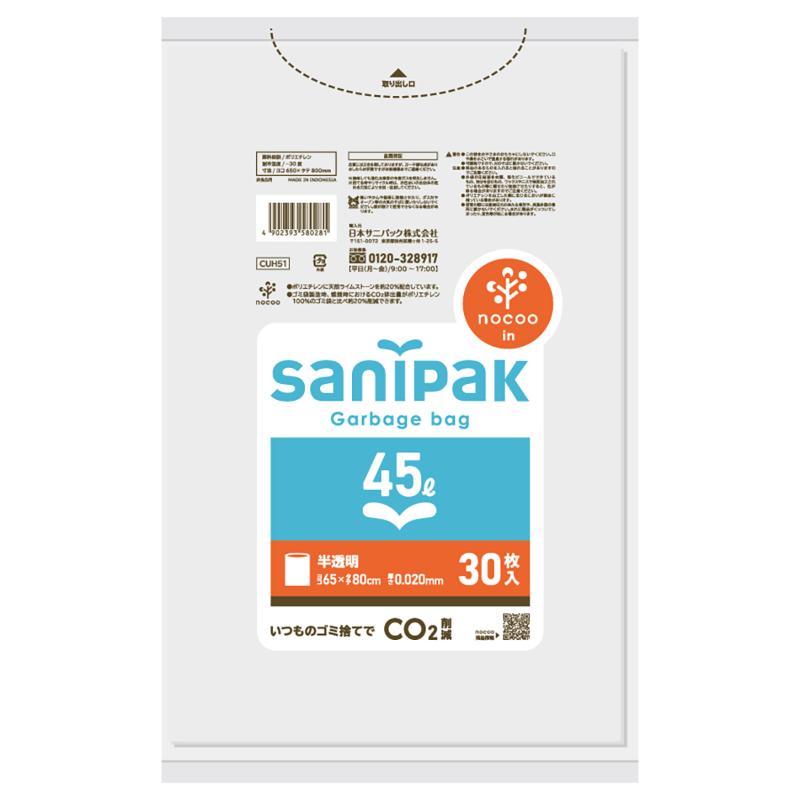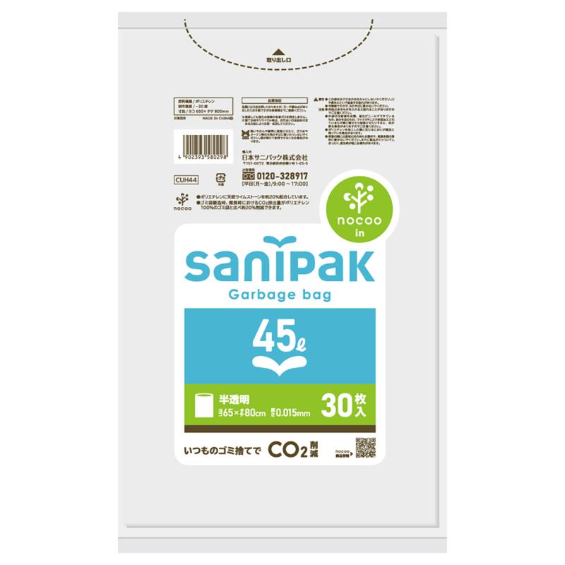 HDゴミ袋 サニパックポリ袋 nocoo in(ノクーイン) 45L 30枚 0.015mm 日本サニパック