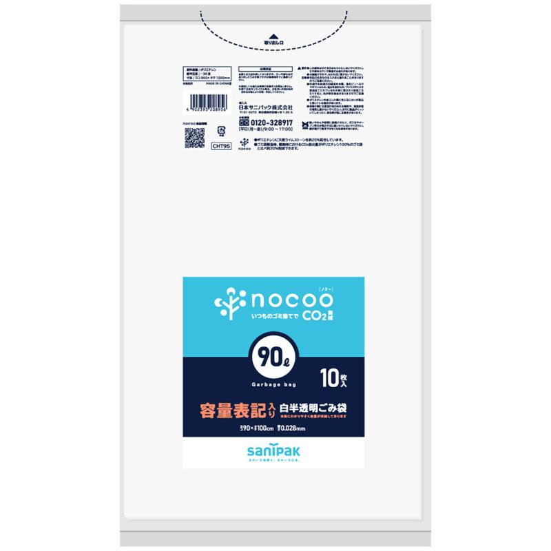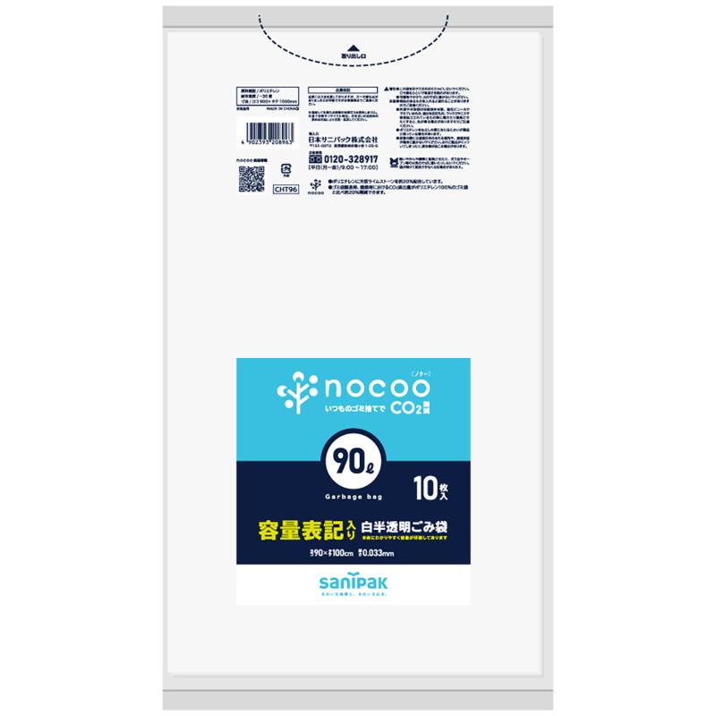 HDゴミ袋 nocoo(ノクー) 容量表記入り 白半透明ごみ収集袋 業務用 45L 10枚 0.023mm 日本サニパック