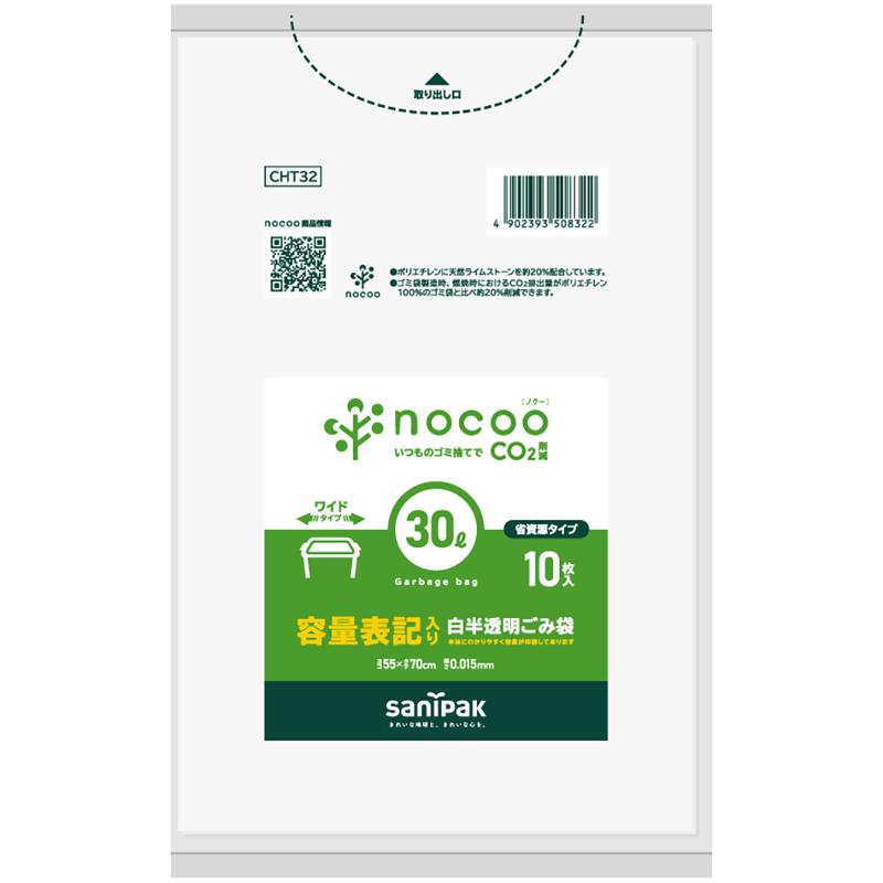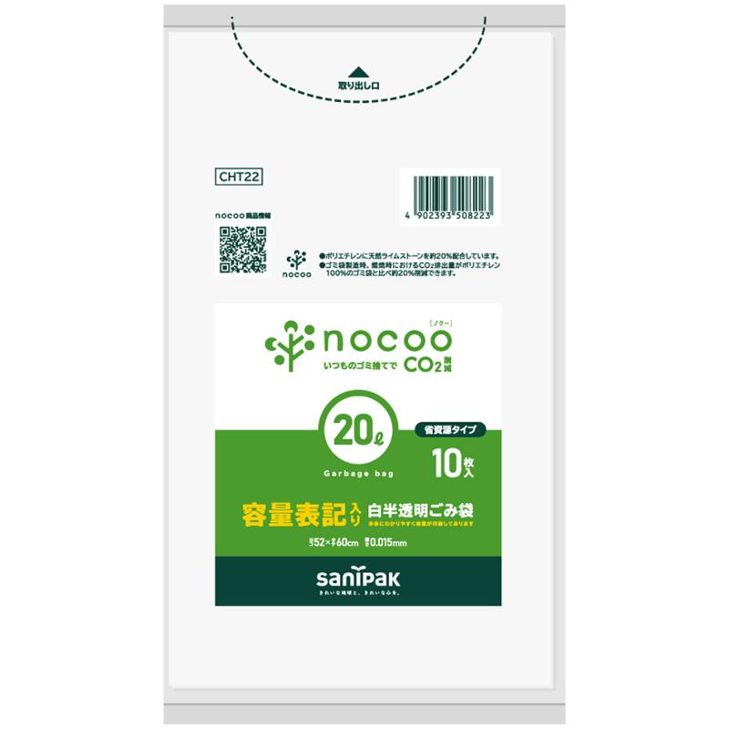 • HDゴミ袋 nocoo(ノクー) 容量表記入り 白半透明ごみ収集袋 省資源 45L 10枚 0.015mm 日本サニパック