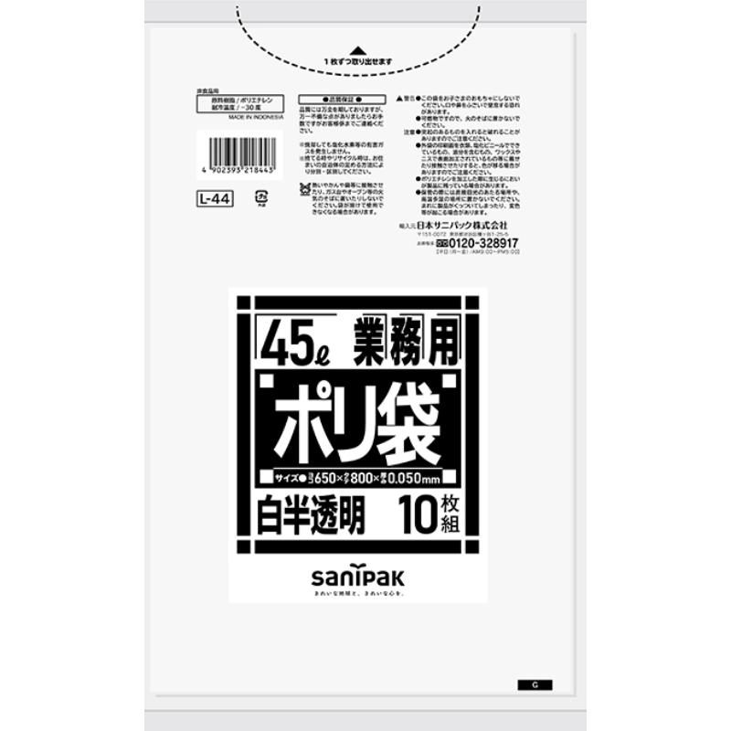 LDゴミ袋 Lシリーズ LLDPE白半透明45L 10枚0.050 日本サニパック