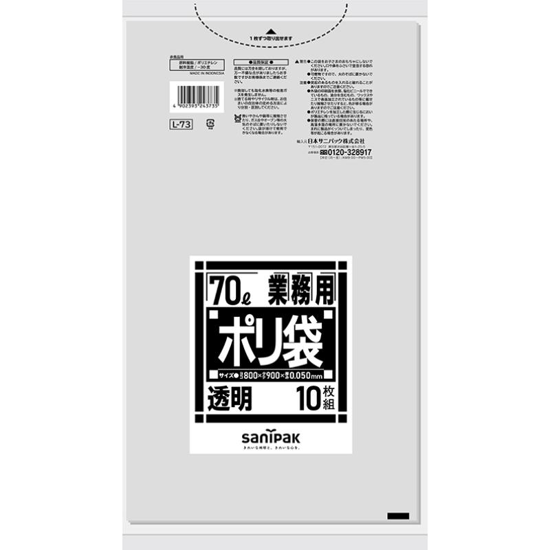 LDゴミ袋 Lシリーズ LLDPE透明70L 10枚0.050 日本サニパック