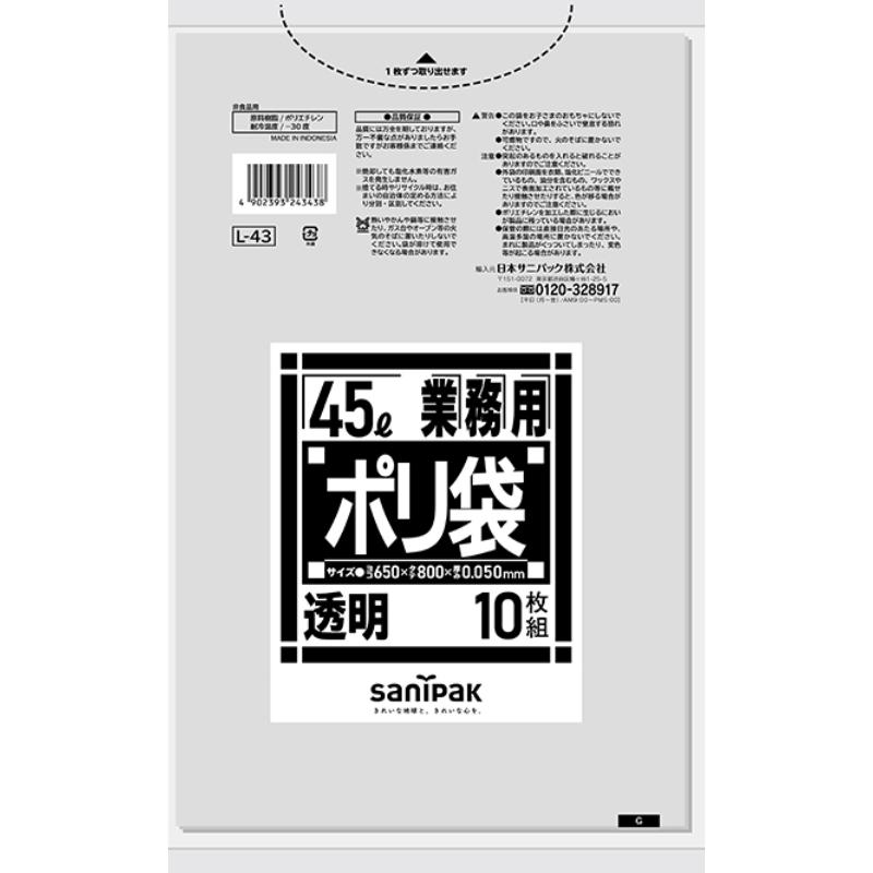 LDゴミ袋 Lシリーズ LLDPE透明45L 10枚0.050 日本サニパック