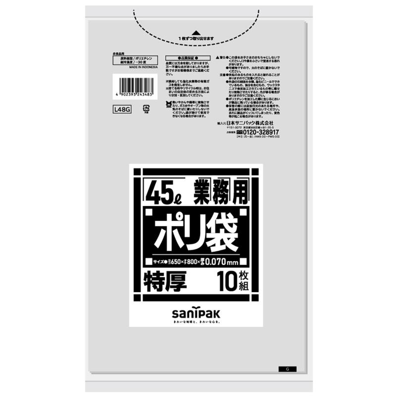 LDゴミ袋 Lシリーズ特厚LLDPE透明45L 10枚0.070 日本サニパック