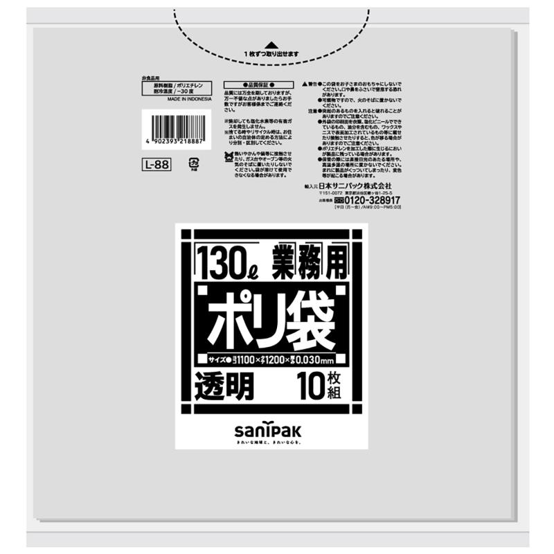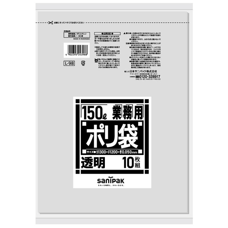 LDゴミ袋 Lシリーズ LLDPE透明90L 10枚0.050 日本サニパック