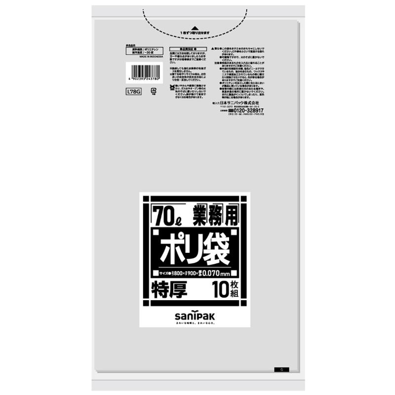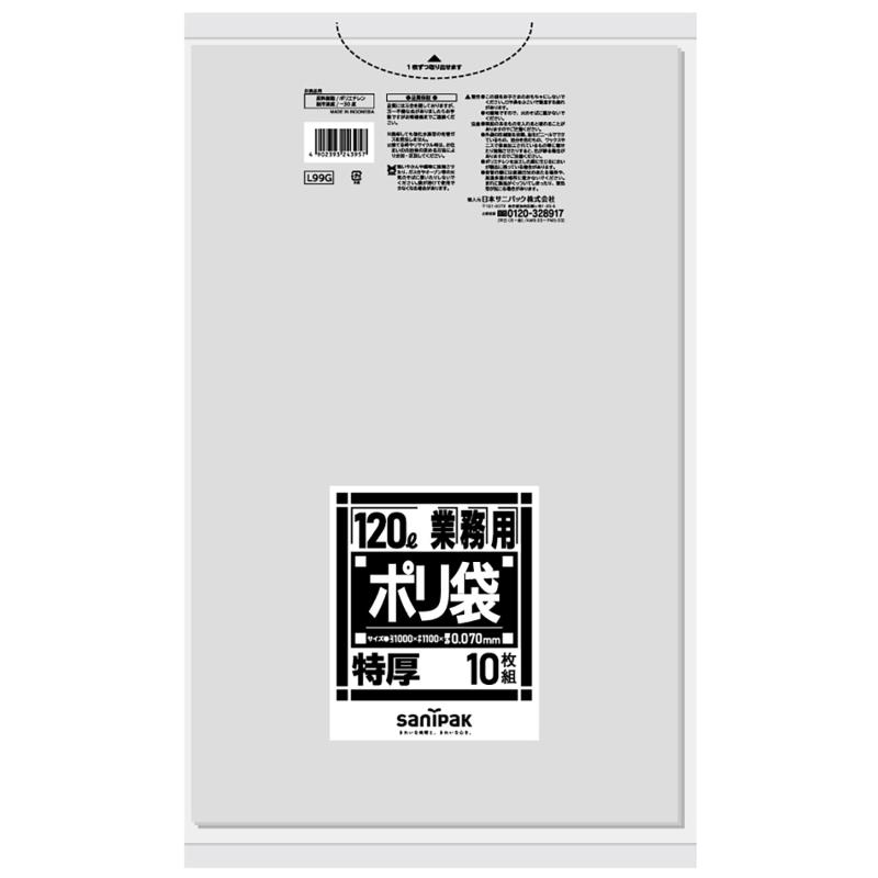 LDゴミ袋 業務用ポリ袋 Lシリーズ 特厚 90L 透明 10枚 0.07mm 日本サニパック