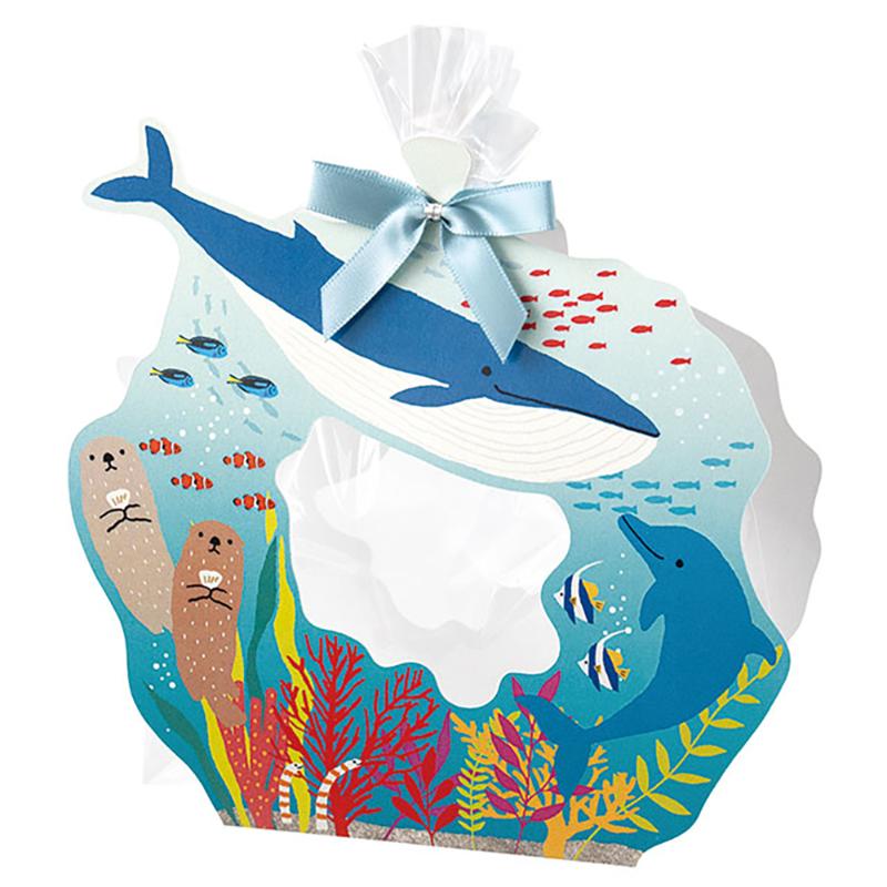 | 商品説明 | 可愛い海の生き物のイラストをあしらったキューブ型ギフトボックスです。イルカ、マンボウ、クジラ、ラッコ、ジンベイザメ、ウミガメ、アザラシなど、可愛い海の生き物のイラストが入っています。内側にもヒトデやホタテ、小魚などのシルエットが全面に入っています。並べるとイラストが繋がるのでディスプレイとしても楽しめるギフトボックスです。 |