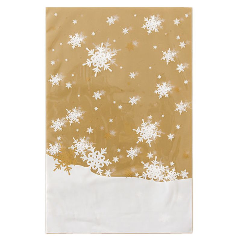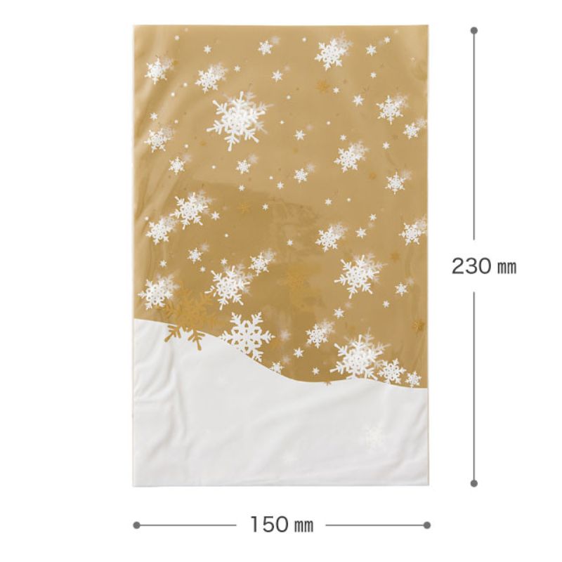 | 商品説明 | 雪の結晶と星がキラキラ。とてもキレイなOPPギフトバッグです。「クリスマス」という文字が入っていないので、冬の期間中ご利用いただけます。[マチ形状]マチなし。両面異デザイン。 |