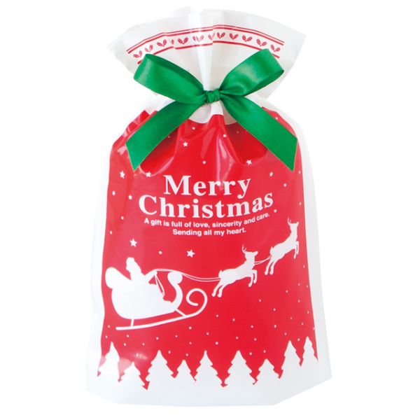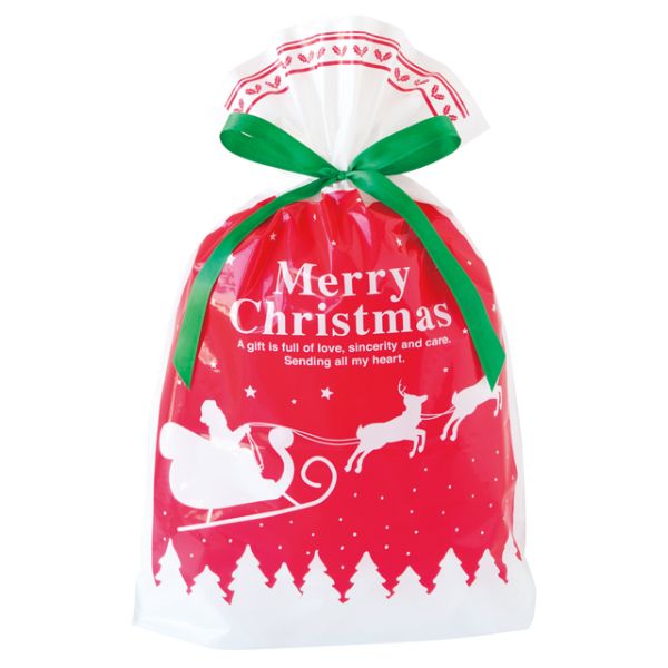 袋 ベーシッククリスマス リボン付PEギフトバッグ-L(20枚) ヘッズ