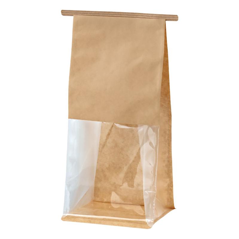 | 商品説明 | 袋下半分が大きな窓になっている未晒クラフト紙製の無地角底袋です。前面・両側面の3面が透明の窓になっているので、中の商品を活かした魅せるラッピングに。ワイヤー入りの袋口を折り返して止めるだけで簡単にナチュラルなラッピングが完成。お店のシールやスタンプをあしらうと、オリジナル感がアップしておすすめ。底横マチが広いので商品がたっぷり入ります。食品非対応ですので、食品を入れる際は別途個包装してください。上部ワイヤー付。ワイヤーの先端でケガをしないようご注意ください。 |