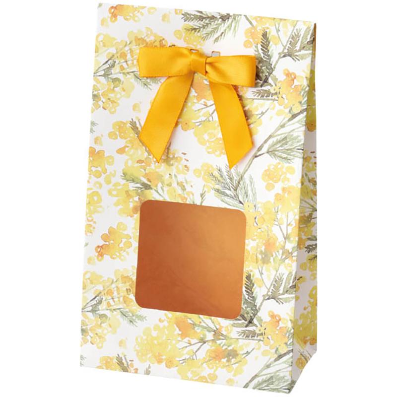 | 商品規格 | サイズ:W120×D65×H200mm、[窓サイズ]W60×H60mm、[厚み]180g/平方メートル 材質:紙、PET(透明) 重量:387g マチ形状:横底マチ |