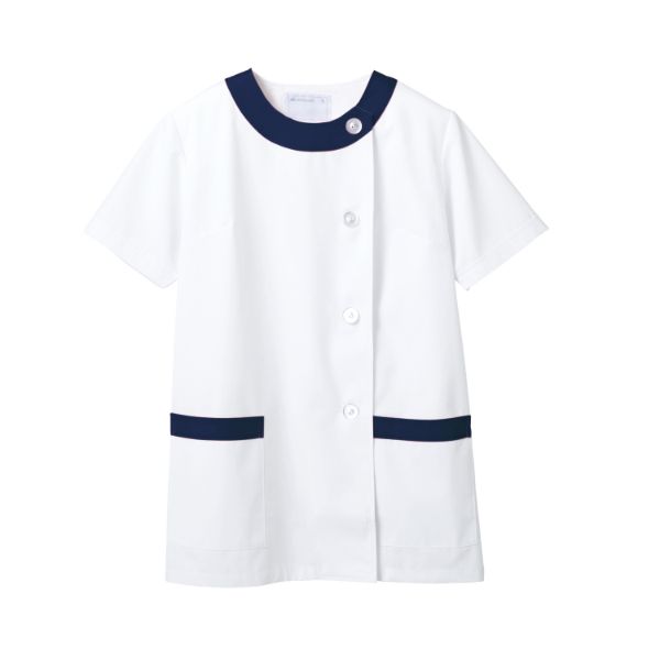 1-092_L 調理衣 レディス 半袖 白/紺 L 住商モンブラン