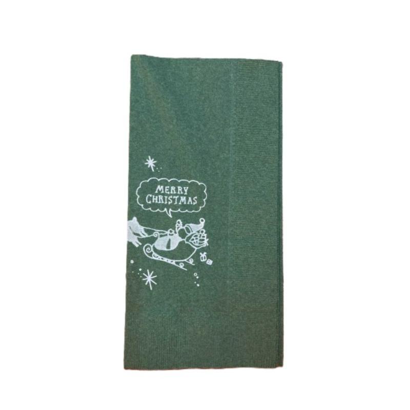 店舗資材 2P8ツ折り クリスマスナプキン LUC-28 X'mas2 イタリアングリーン オリエンタル紙業