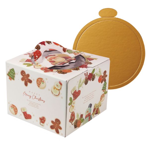 商品説明 | クリスマスケーキ向けデザインが新登場。高さが150mmあるので装飾しても高さに余裕があります。丸型の台紙付です。 |