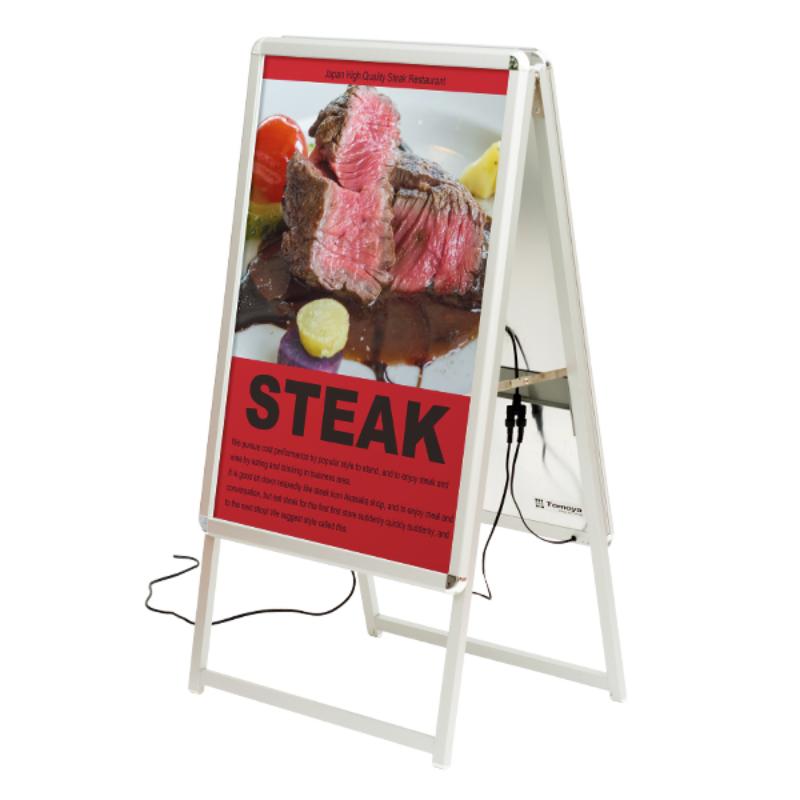 | 商品説明 | 人気のグリップAがLED仕様になって新登場、A型電飾看板の決定版です。驚きのロープライスLED看板です。防滴仕様なので屋外での使用も可能です。省エネ・高輝度・屋外仕様・薄型設計になっております。※屋外で使用の際は直射日光や雨風、過酷な環境はできるだけ避けご使用いただきますようお願いいたします。また、ポスターに防水処理を施し、本体コードとACアダプターのジョイント部分は必ず防水処理を施してください。 |