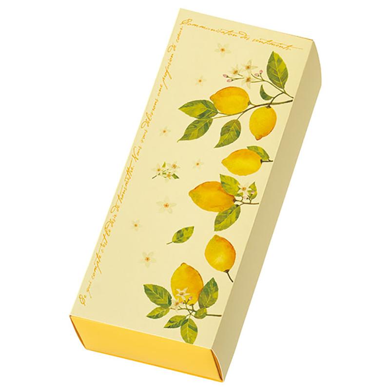 | 商品説明 | レモンの花と実のイラストが爽やかなスリーブタイプのギフトボックスです。内箱の鮮やかな黄色がお菓子をさらにおいしそうに見せてくれます。レモンケーキが10個程度入る大きさで、お菓子を綺麗に詰められる便利な仕切付の底板がついています。カジュアルめのギフトにぴったりのギフトボックスです。仕切付。 |
